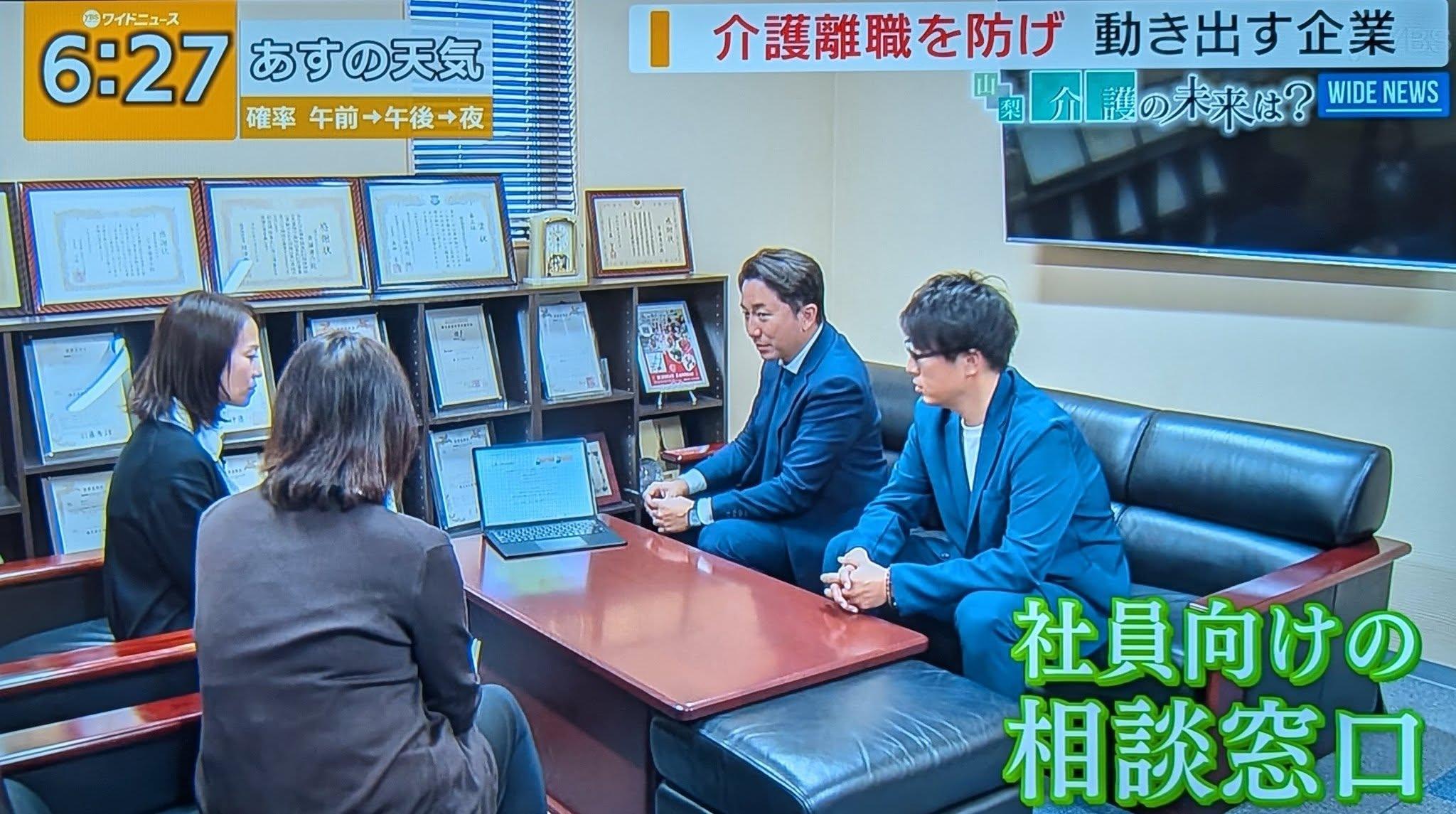 11月12日(水)のYBSワイドニュース内介護の日特番にて『介護離職の特集』が放送され、当社および提携先の「ネクストイノベーション様」が紹介されました。
